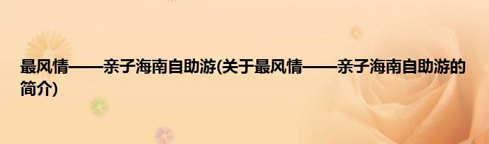 大家好,最风情——亲子海南自助游,关于最风情——亲子海南自助游的简介很多人还不知道,现在让我们一起来看看吧!