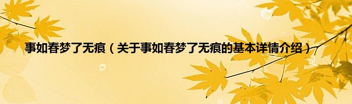 本文关于事如春梦了无痕的基本详情介绍就讲解完毕,希望对大家有所帮助。
