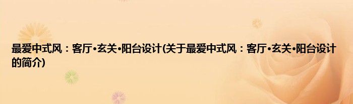 本文关于最爱中式风:客厅·玄关·阳台设计的简介就讲解完毕,希望对大家有所帮助。