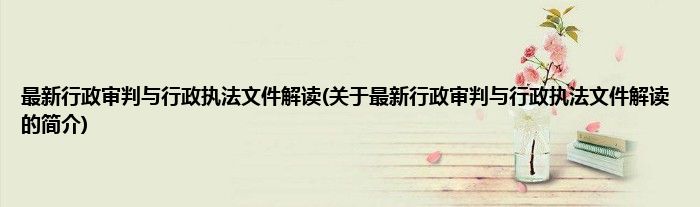 最新行政审判与行政执法文件解读(关于最新行政审判与行政执法文件解读的简介)