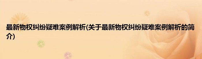 最新物权纠纷疑难案例解析(关于最新物权纠纷疑难案例解析的简介)