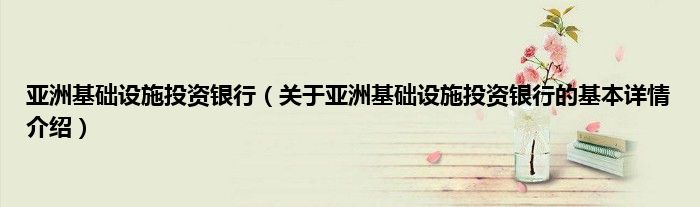 本文关于亚洲基础设施投资银行的基本详情介绍就讲解完毕,希望对大家有所帮助。