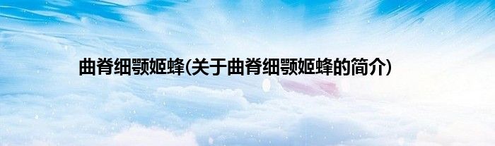大家好,曲脊细颚姬蜂,关于曲脊细颚姬蜂的简介很多人还不知道,现在让我们一起来看看吧!