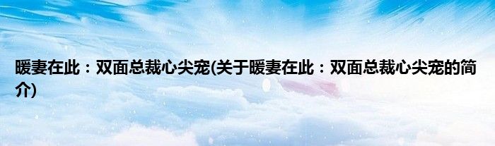 暖妻在此:双面总裁心尖宠(关于暖妻在此:双面总裁心尖宠的简介)