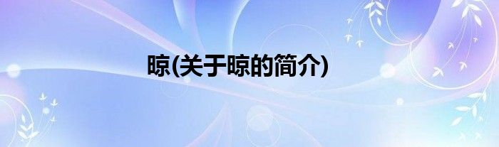 大家好,晾,关于晾的简介很多人还不知道,现在让我们一起来看看吧!