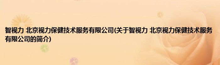 本文关于智视力 北京视力保健技术服务有限公司的简介就讲解完毕,希望对大家有所帮助。