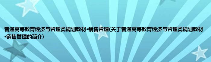 大家好,普通高等教育经济与管理类规划教材·销售管理,关于普通高等教育经济与管理类规划教材·销售管理的简介很多人还不知道,现在让我们一起来看看吧!