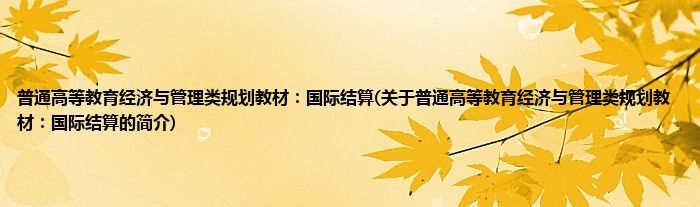 本文关于普通高等教育经济与管理类规划教材:国际结算的简介就讲解完毕,希望对大家有所帮助。