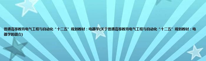 本文关于普通高等教育电气工程与自动化“十二五”规划教材:电器学的简介就讲解完毕,希望对大家有所帮助。