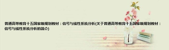 本文关于普通高等教育十五国家级规划教材:信号与线性系统分析的简介就讲解完毕,希望对大家有所帮助。