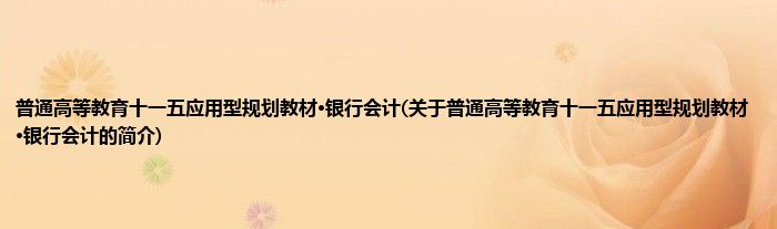 本文关于普通高等教育十一五应用型规划教材·银行会计的简介就讲解完毕,希望对大家有所帮助。