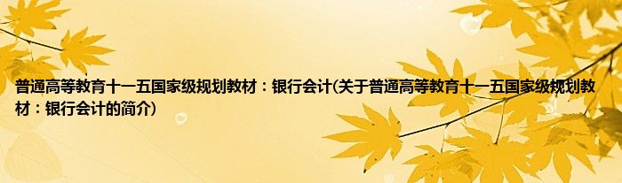 本文关于普通高等教育十一五国家级规划教材:银行会计的简介就讲解完毕,希望对大家有所帮助。