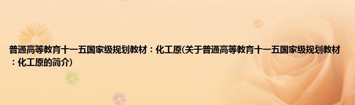 本文关于普通高等教育十一五国家级规划教材:化工原的简介就讲解完毕,希望对大家有所帮助。