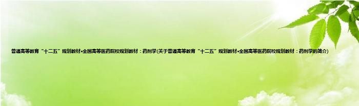 本文关于普通高等教育“十二五”规划教材·全国高等医药院校规划教材:药剂学的简介就讲解完毕,希望对大家有所帮助。