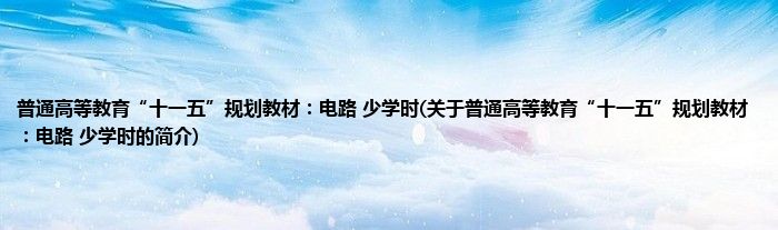 本文关于普通高等教育“十一五”规划教材:电路 少学时的简介就讲解完毕,希望对大家有所帮助。