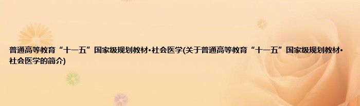 本文关于普通高等教育“十一五”国家级规划教材·社会医学的简介就讲解完毕,希望对大家有所帮助。