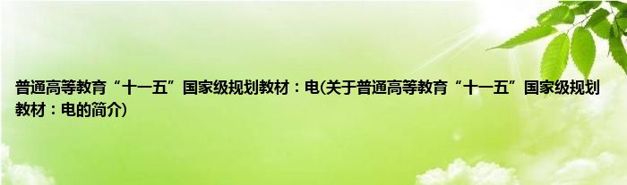 大家好,普通高等教育“十一五”国家级规划教材:电,关于普通高等教育“十一五”国家级规划教材:电的简介很多人还不知道,现在让我们一起来看看吧!