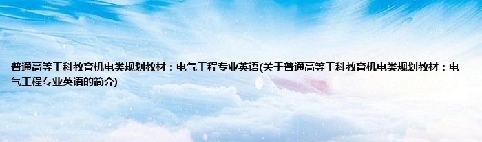 普通高等工科教育机电类规划教材:电气工程专业英语(关于普通高等工科教育机电类规划教材:电气工程专业英语的简介)