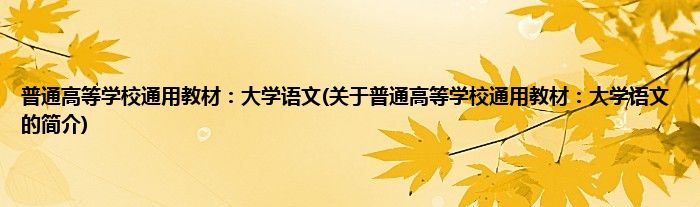 本文关于普通高等学校通用教材:大学语文的简介就讲解完毕,希望对大家有所帮助。