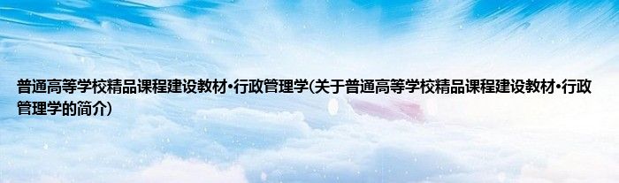 最佳答案大家好,普通高等学校精品课程建设教材·行政管理学,关于普通高等学校精品课程建设教材·行政管理学的简介很多人还不知道,现在让我们一起来看看吧! 1、 《普通高等学校精品课程建设教材·行政管理学》是2010年中国农业大学出版社出版的图书。本文关于普通高等学校精品课程建设教材·行政管理学的...