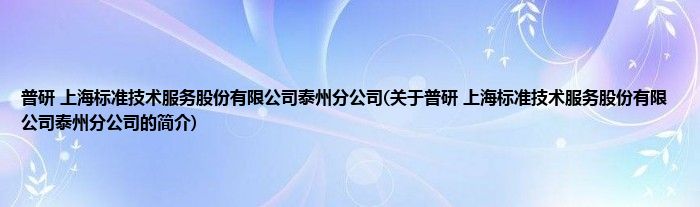 本文关于普研 上海标准技术服务股份有限公司泰州分公司的简介就讲解完毕,希望对大家有所帮助。
