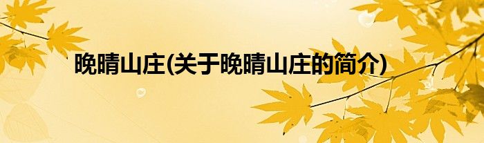 大家好,晚晴山庄,关于晚晴山庄的简介很多人还不知道,现在让我们一起来看看吧!