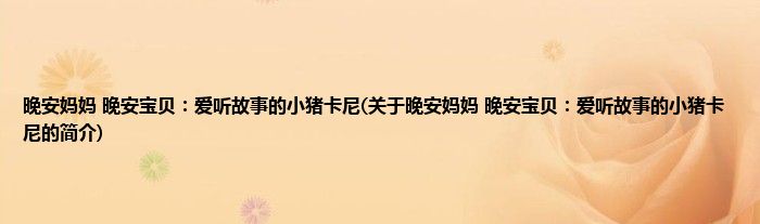 本文关于晚安妈妈,晚安宝贝:爱听故事的小猪卡尼的简介就讲解完毕,希望对大家有所帮助。