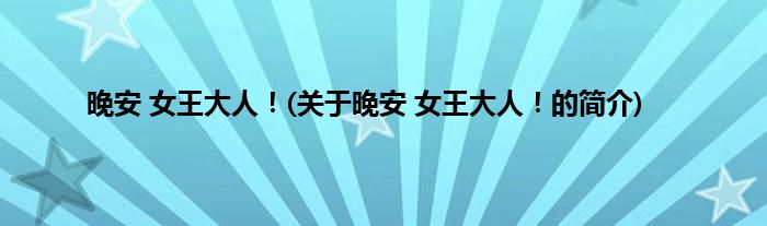 大家好,晚安,女王大人!,关于晚安,女王大人!的简介很多人还不知道,现在让我们一起来看看吧!