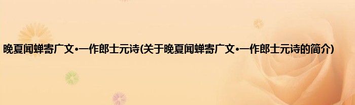 大家好,晚夏闻蝉寄广文·一作郎士元诗,关于晚夏闻蝉寄广文·一作郎士元诗的简介很多人还不知道,现在让我们一起来看看吧!
