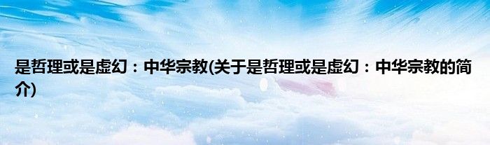 大家好,是哲理或是虚幻:中华宗教,关于是哲理或是虚幻:中华宗教的简介很多人还不知道,现在让我们一起来看看吧!