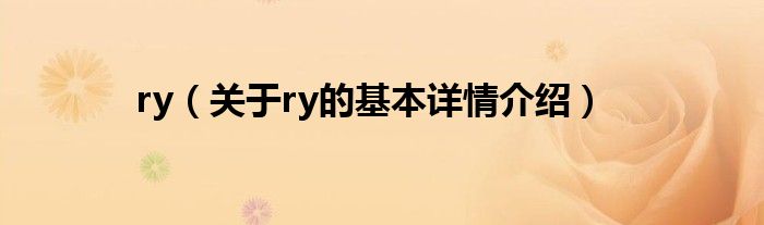 本文关于ry的基本详情介绍就讲解完毕,希望对大家有所帮助。