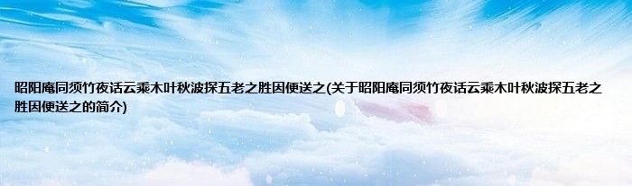 昭阳庵同须竹夜话云乘木叶秋波探五老之胜因便送之(关于昭阳庵同须竹夜话云乘木叶秋波探五老之胜因便送之的简介)