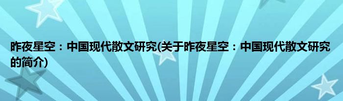 大家好,昨夜星空:中国现代散文研究,关于昨夜星空:中国现代散文研究的简介很多人还不知道,现在让我们一起来看看吧!
