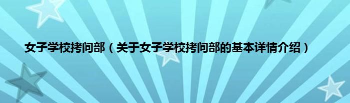 女子学校拷问部(关于女子学校拷问部的基本详情介绍)