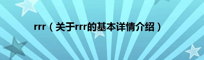 本文关于rrr的基本详情介绍就讲解完毕,希望对大家有所帮助。