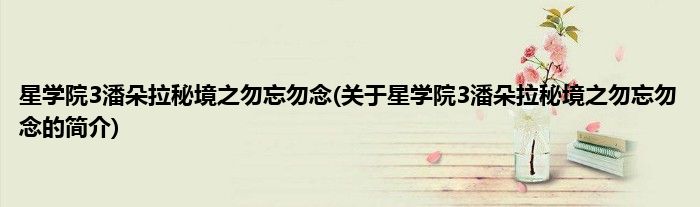 星学院3潘朵拉秘境之勿忘勿念(关于星学院3潘朵拉秘境之勿忘勿念的简介)