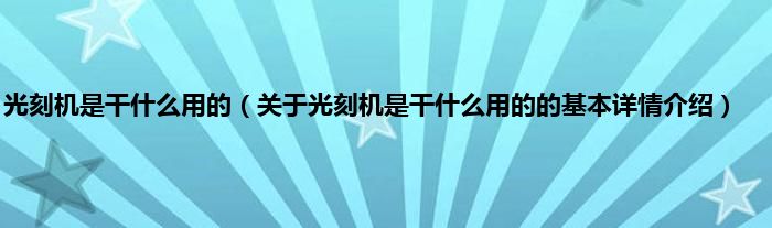 光刻机是干什么用的(关于光刻机是干什么用的的基本详情介绍)