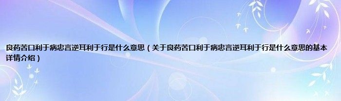 本文关于良药苦口利于病忠言逆耳利于行是什么意思的基本详情介绍就讲解完毕,希望对大家有所帮助。