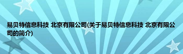 易贝特信息科技 北京有限公司(关于易贝特信息科技 北京有限公司的简介)
