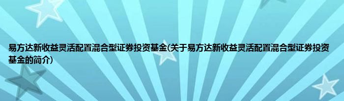大家好,易方达新收益灵活配置混合型证券投资基金,关于易方达新收益灵活配置混合型证券投资基金的简介很多人还不知道,现在让我们一起来看看吧!
