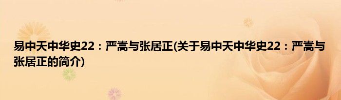 易中天中华史22:严嵩与张居正(关于易中天中华史22:严嵩与张居正的简介)
