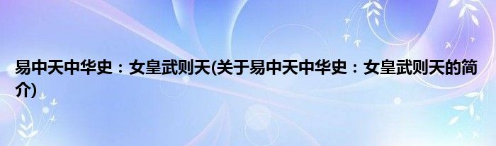 本文关于易中天中华史:女皇武则天的简介就讲解完毕,希望对大家有所帮助。