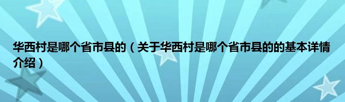 本文关于华西村是哪个省市县的的基本详情介绍就讲解完毕,希望对大家有所帮助。