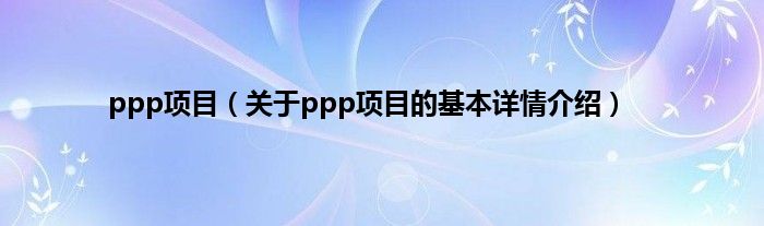 本文关于ppp项目的基本详情介绍就讲解完毕,希望对大家有所帮助。