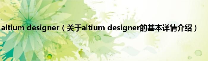 本文关于altium designer的基本详情介绍就讲解完毕,希望对大家有所帮助。