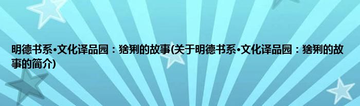 本文关于明德书系·文化译品园:猞猁的故事的简介就讲解完毕,希望对大家有所帮助。