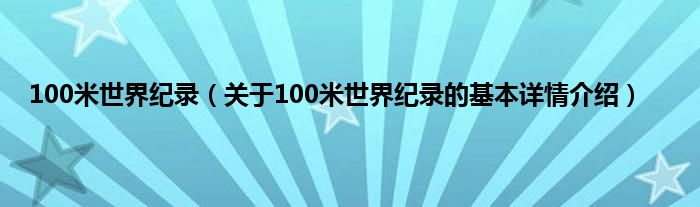 100米世界纪录(关于100米世界纪录的基本详情介绍)