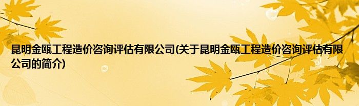 本文关于昆明金瓯工程造价咨询评估有限公司的简介就讲解完毕,希望对大家有所帮助。