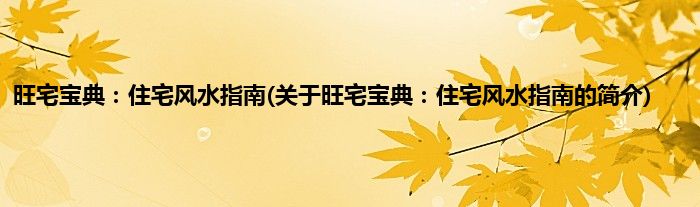 本文关于旺宅宝典:住宅风水指南的简介就讲解完毕,希望对大家有所帮助。