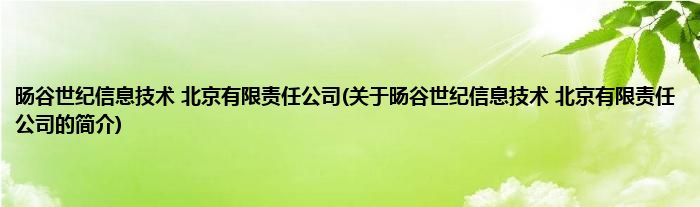 本文关于旸谷世纪信息技术 北京有限责任公司的简介就讲解完毕,希望对大家有所帮助。